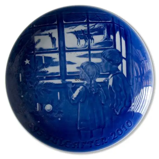 This 2010 Bing & Grondahl Christmas Jubilee plate was issued to celebrate the 115th anniversary of the first Bing & Grondahl Christmas plate in 1895. The motif of this 2010 Bing & Grondahl Christmas Jubilee plate comes from 1997 and awekes memories of the innocence of childhood and childlike expectation. The animals of the woods and forests look out from their hiding places, full of inquisitiveness, and the cildren look out too, excited about what awaits them. The title of this 2010 plate is Country Christmas and the plate was designed by Jorgen Nielsen. The Bing & Grondahl Christmas Jubilee Plates were started in 1915 and are still being continued with a new Jubilee plate every fifth year which is manufactured in underglaze.