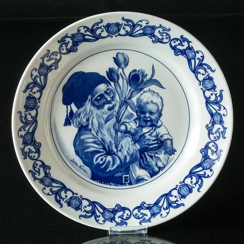 Jenny Nystrom Christmas plate 1974 with motif of Grand papa and child.