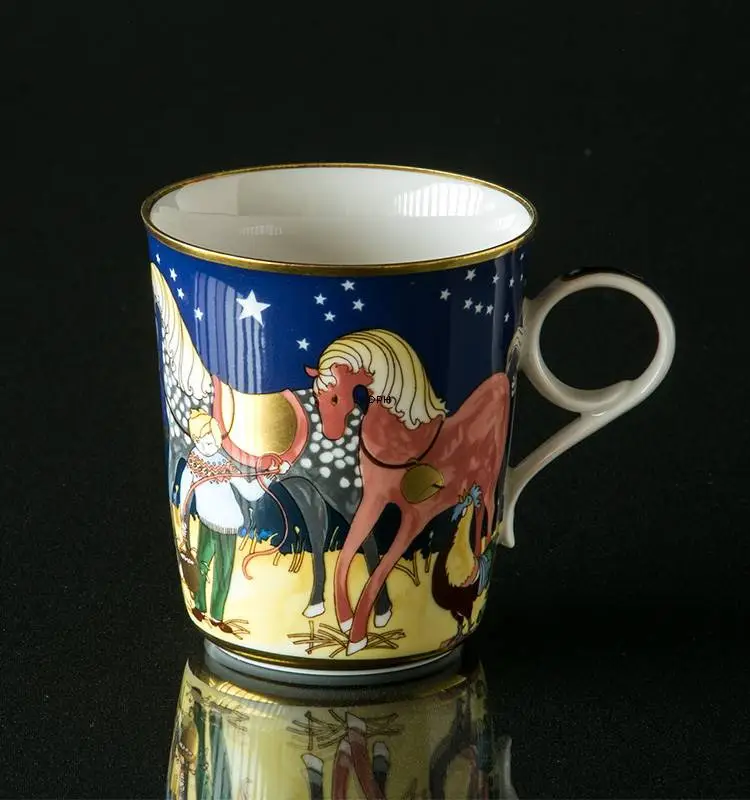Rorstrand mug in the series “Christmas poetry”. The motifs are taken from famous Swedish Christmas carols. The title of this 1979 mug was “Stephen was a stableboy”. The mug is decorated with 11 colours plus gold and it was designed by Jacqueline Lynd.