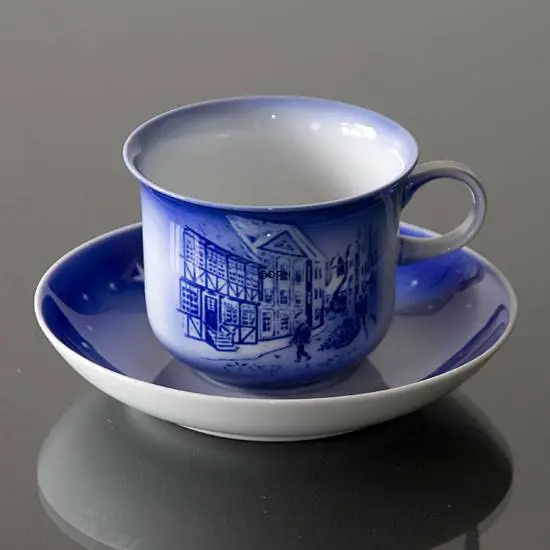 The motif of this 1989 Desirée annual cup from The Porcelain Factory Desiree, also known as Désirée Denmark, Svend Jensen of Denmark, Old Copenhagen Blue is found in the Hans Christian Andersen fairytale The Old House. The 1989 Hans Christian Andersen Annual Cup had the same motif as the 1989 Svend Jensen Christmas plate. So the 1989 Desiree Annual Cup and the 1989 Desiree Christmas plate are actaully a beautiful coffee set with plate and cup. Hans Christian Andersen writes so lifelike about The Old House, which is standing side by side with new beautiful houses. The old house seems out of place but it has a special charm. The wide step, the carved window frames and the bay which takes some of the view from the other houses. One day the small boy from the neighbour opposite The Old House visist the old man who is living in The Old House. The old man tells stories about every single furniture in his house. Once again the artist behind many Desiree Annual cups, Svend Otto S., has designed an expressive Annual cup. Désirée started the Annual cup series in 1982 and ended it in 2001. So 20 different sets were made to complete a perfect coffee set. All motifs of the Hans Christian Andersen annual cups from Désirée are inspired by Hans Christian Andersen´s Fairy Tales.