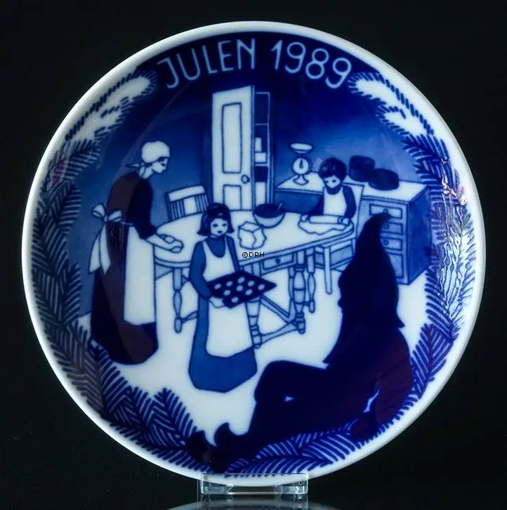 1989 Porsgrund Christmas plate with the title Preparing for Christmas. The technique used for the 1989 Porsgrund Christmas plate was underglazed.