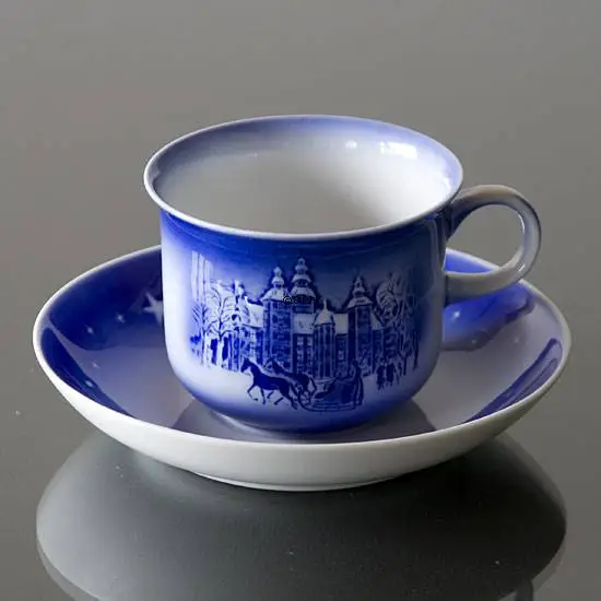 The motif of this 1990 Desirée annual cup from The Porcelain Factory Desiree, also known as Désirée Denmark, Svend Jensen of Denmark, Old Copenhagen Blue is Rosenborg Castle which is found in the Hans Christian Andersen fairytale Godfather’s Picture Book. The 1990 Hans Christian Andersen Annual Cup had the same motif as the 1990 Svend Jensen Christmas plate. So the 1990 Desiree Annual Cup and the 1990 Desiree Christmas plate are actaully a beautiful coffee set with plate and cup. In the fairytale “Godfather’s Picture Book” the writer Hans Christian Andersen mentions the birth of the Danish King Christian 4. In his time King Christian 4. built many admirable buildings. Among these buildings we have to mention Rosenborg Castle. The King wanted a “summerhouse” and the first stones to this house were placed in 1606. Since that the castle has been extended several times. King Christian 4. died in this castle. Today the castle is no longer used as a royal residence. Instead it houses the Crown Jewels and the Danish Crown Regalia. At the museum it is also possible to see the history about the Danish kings through 300 years. The 1990 Desiree Annual cup was designed by Svend Otto S. Désirée started the Annual cup series in 1982 and ended it in 2001. So 20 different sets were made to complete a perfect coffee set. All motifs of the Hans Christian Andersen annual cups from Désirée are inspired by Hans Christian Andersen´s Fairy Tales.