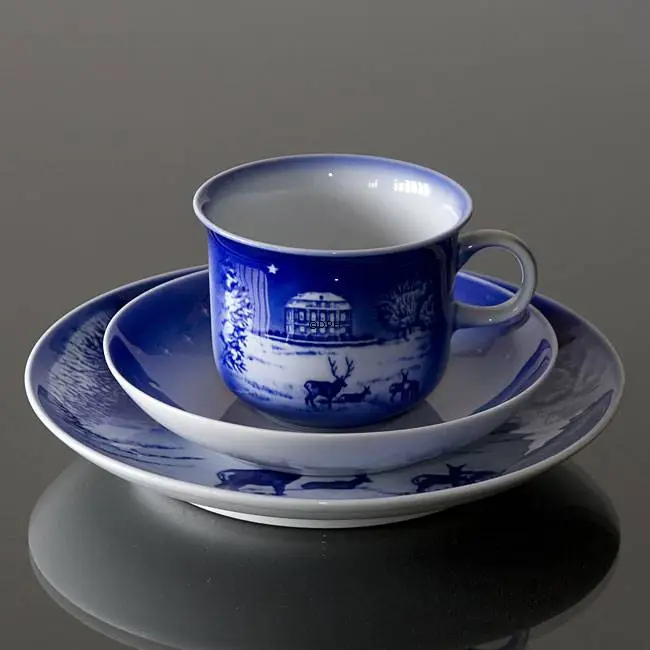 The motif of this 2000 Desirée annual cup from The Porcelain Factory Desiree, also known as Désirée Denmark, Svend Jensen of Denmark, Old Copenhagen Blue is The Royal Hunting Castle “Eremitagen” The 2000 Hans Christian Andersen Annual Cup had the same motif as the 2000 Svend Jensen Christmas plate. So the 2000 Desiree Annual Cup and the 2000 Desiree Christmas plate are actaully a beautiful coffee set with plate and cup. This year the motif of the Annual cup is a little different than the previous years. This year the factory has not found the motif in a special Hans Christian Andersen fairytale, but instead found its inspiration in a part of the country as Hans Christian Andersen often was visiting. He spent lots of his summer holidays together with the Melchior Family in their place called “Rolighed”. In his diaries from this place Hans Christian Andersen was often writing about Dyrehaven (The Deer Garden) and the Eremitage Palace. The Eremitage Palace, or the Eremitage Hunting Lodge as it is also called, was used by hunting in The Deer Garden. Today the Eremitage Palace is still being used too the annual hunting named “Hubertus”. The artist Lis Torbøl designed this Annual cup. Désirée started the Annual cup series in 1982 and ended it in 2001. So 20 different sets were made to complete a perfect coffee set. All motifs of the Hans Christian Andersen annual cups from Désirée are inspired by Hans Christian Andersen´s Fairy Tales.