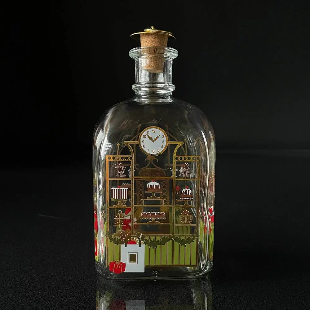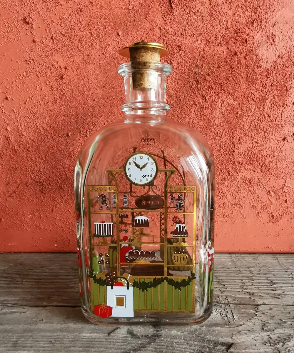 This year, Jette Frölich takes us into the old bakery, which, as tradition dictates, offers welltasting pastries. On one side of the Christmas bottle, we see a girl dressed warmly, on her way into the café for a refreshment after the many Christmas shopping trips. In the beautifully decorated windows, you can spot the many treats that the bakery and confectionery offer. On the other side of the bottle, there’s another window adorned with large, lavish Christmas cakes surrounded by fir garlands and a clock at the top. On one of the narrow sides of the Christmas bottle, there’s a boy gazing enviously at all the delicious bread and cakes in the window. This is also where the traditional date marking for the days leading up to Christmas can be found, so you can enjoy a measured dram every day. On the other narrow side, a girl is seen sitting at a table in the cozy café, enjoying a cup of hot coffee, tea or cocoa.
