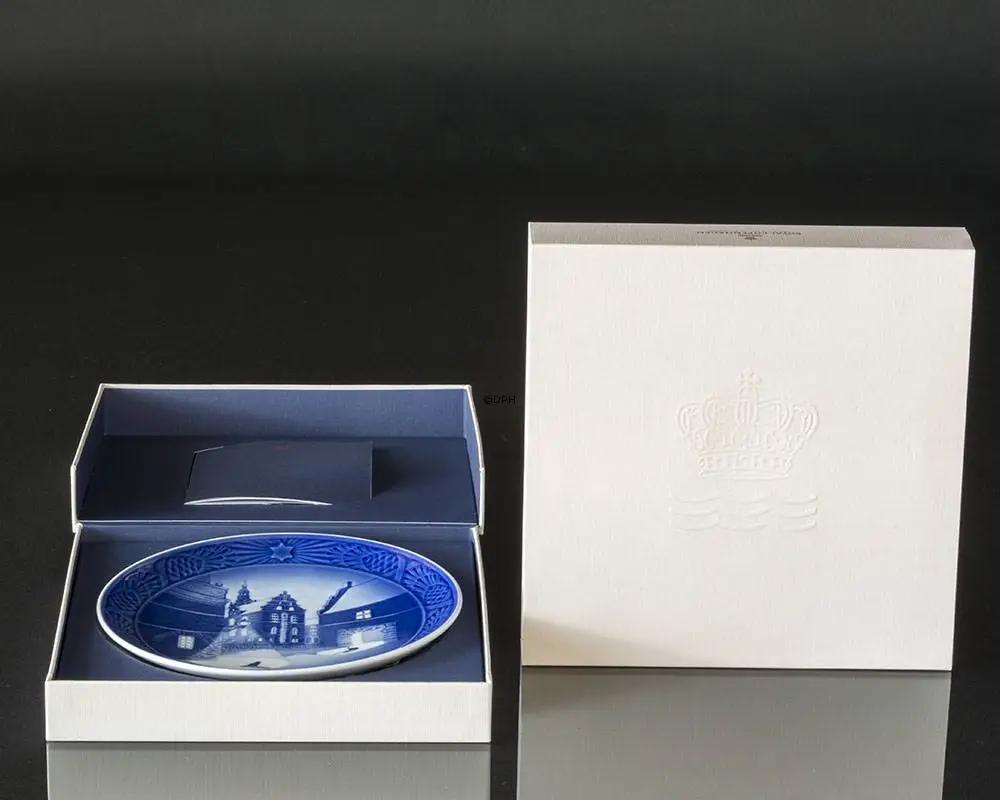 2022 Royal Copenhagen Christmas plate, designed by Allan Therkelsen, has the title Frederiksborg Castle.