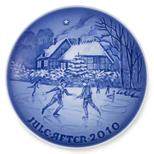 2010 Bing & Grondahl Christmas plate, designed by Jørgen Nielsen, is titled Ice dancing on the lake.