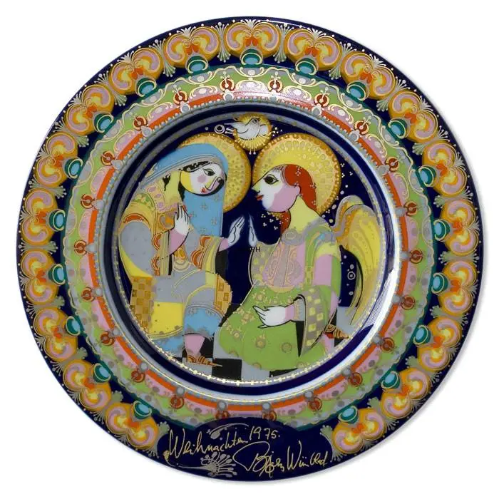 Bjorn Wiinblad porcelain Christmas plate 1975, produced by Rosenthal Motif: The Proclamation Designed by: Bjoern Wiinblad Diameter: 11″ – 29 cm